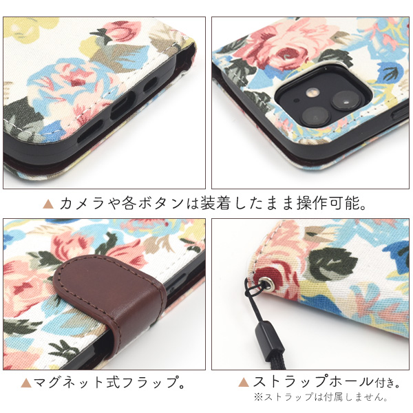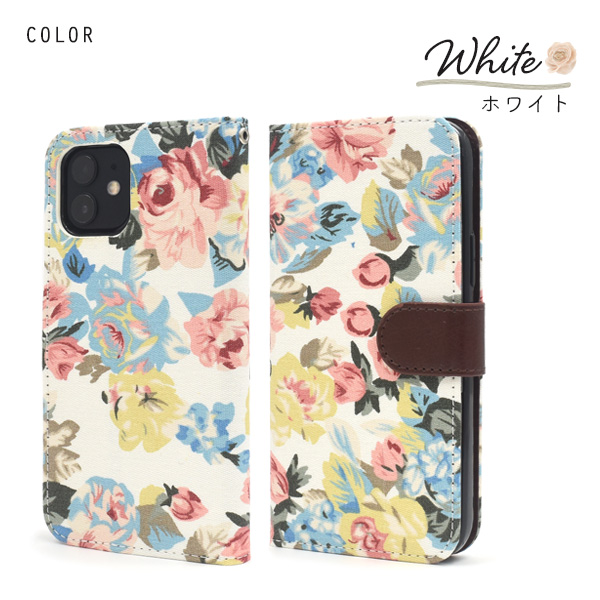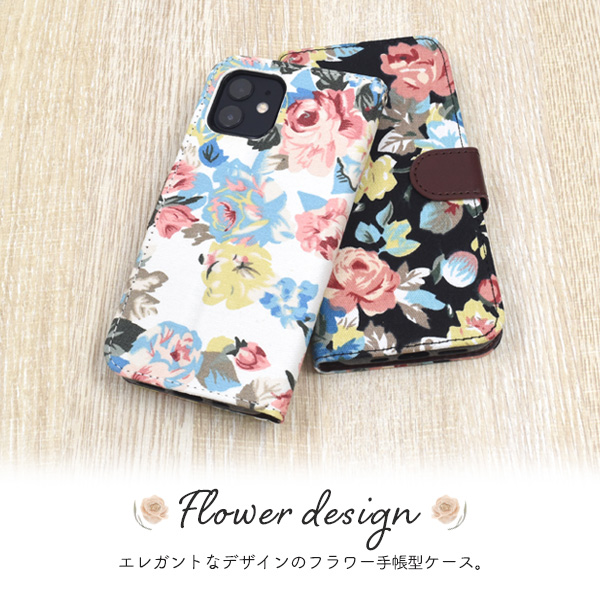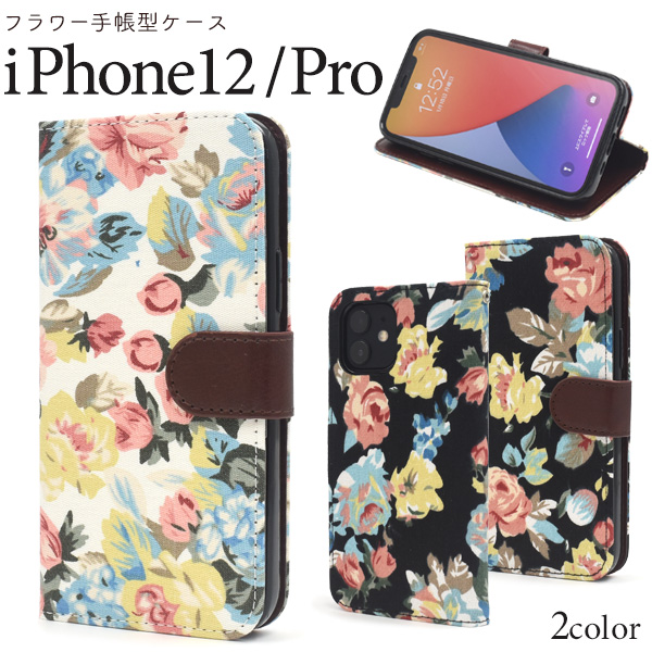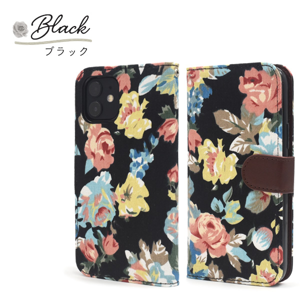 スマートフォンケース iPhone12 iPhone12Pro用 手帳型 花柄 携帯ケース フラワー 花模様 お花 華やか スマホケース カジュアル 装着簡単 お洒落 横開き オシャレ SoftBank au docomo おしゃれ フラワー 黒 白 コンサバ