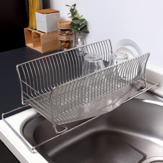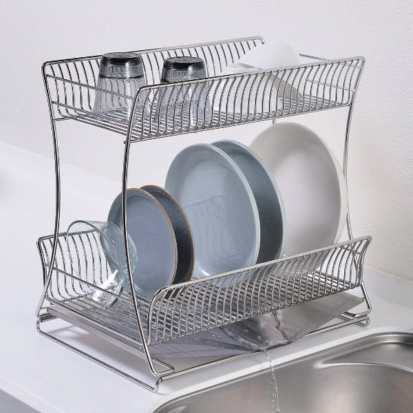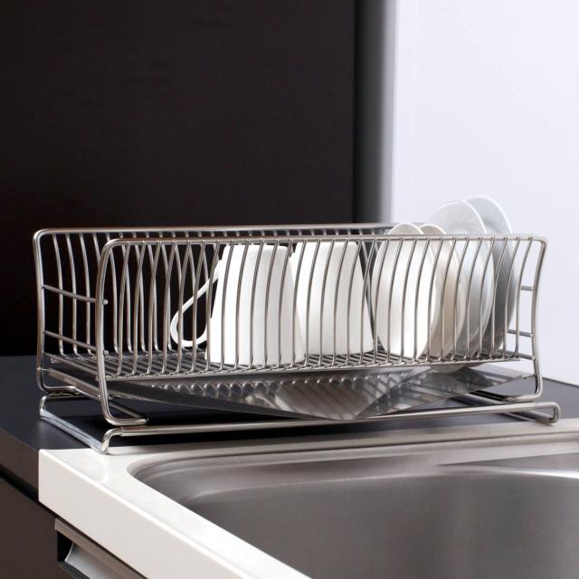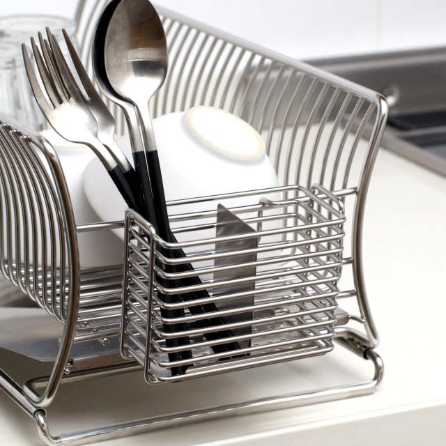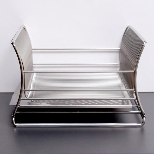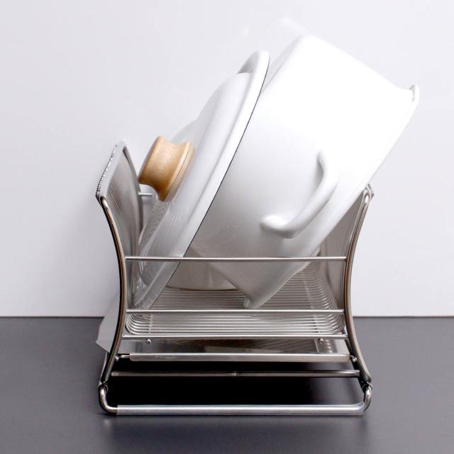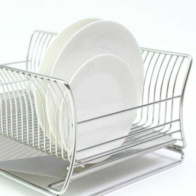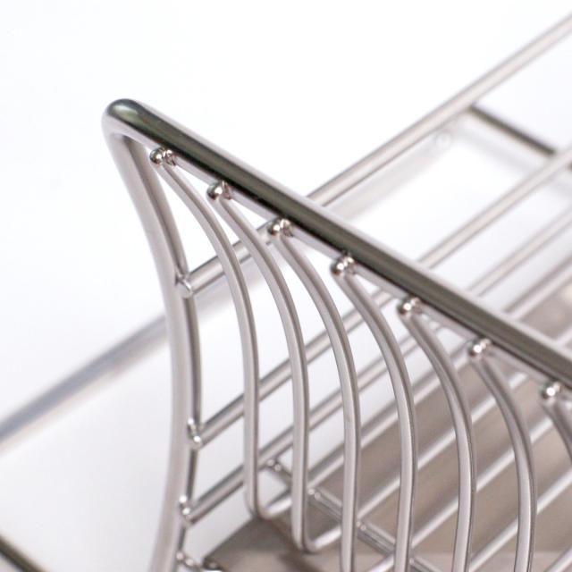 ゆるやかなカーブを描いた特殊な形状のワイヤーが、お皿のフチをしっかり支えてお皿が倒れにくいです。お皿を立てることで空気の通りが良くなり、乾きが速くなります。