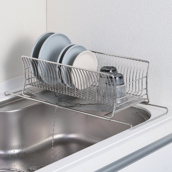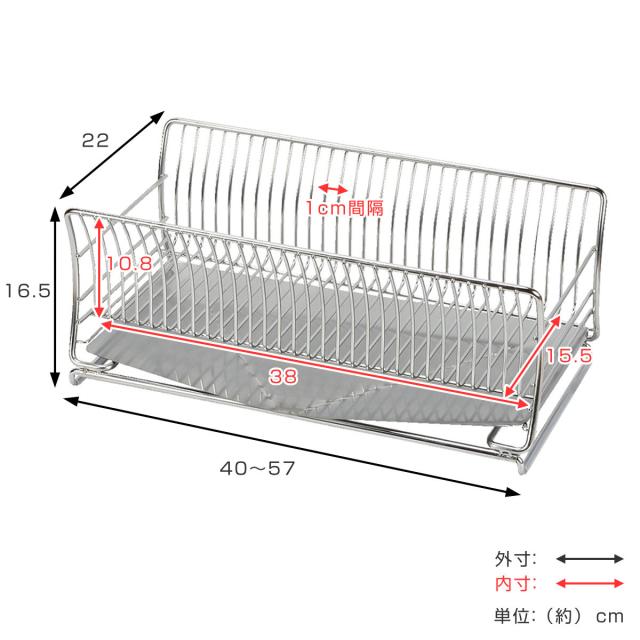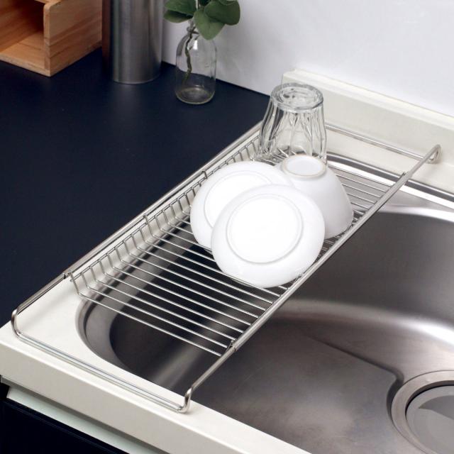 水切りかご 18-8 ステンレス製 水切りカゴ スリム サスティナ ( 水切りラック 水切りバスケット 水切り 流れる オールステンレス 伸縮 1段 ディッシュラック トレー シンク上 シンク渡し シンク横 洗い物 食器洗い 乾燥 )