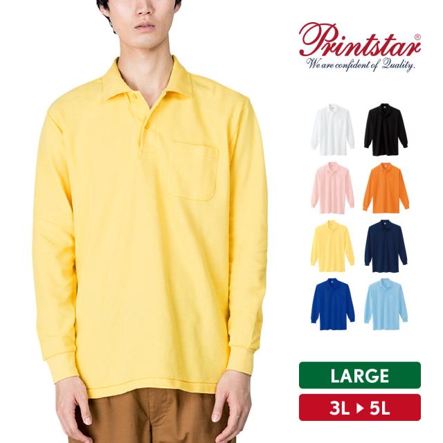 ポロシャツ メンズ レディース 大きいサイズ 長袖 ポケット おしゃれ スポーツ ゴルフ カジュアル 無地 Printstar プリントスター T/C長袖ポロシャツ