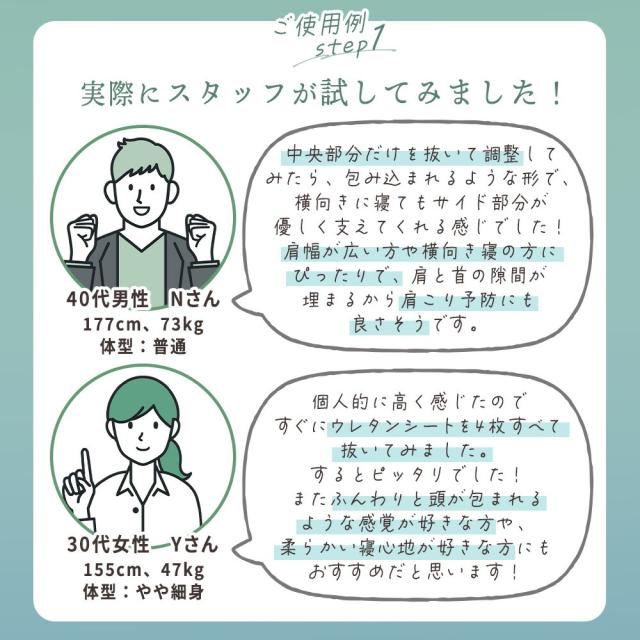 - 肩凝りが酷く またストレートネックのせいか長年睡眠が気持ち良くとれない日々を過ごしていました 今回この枕だったら良いかなと探して購入しました まだ実感がありませんが良くなる事を願って使用中です
