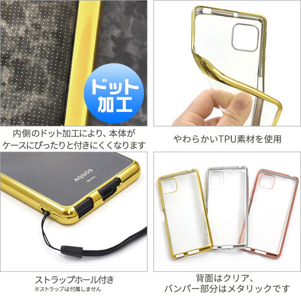 スマートフォンケース AQUOS sense4 SH-41A SH-M15 sense4 lite SH-RM15 sense4 basic A003SH用 メタリックバンパー ソフトケース 上品 オシャレ お洒落 携帯ケース スマホカバー 装着簡単 背面保護 シンプル スリム スマホケース 携帯ケース エレガント sense5G SHG03 SH-53A