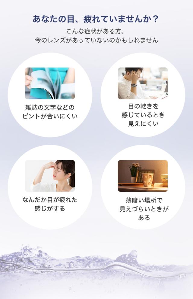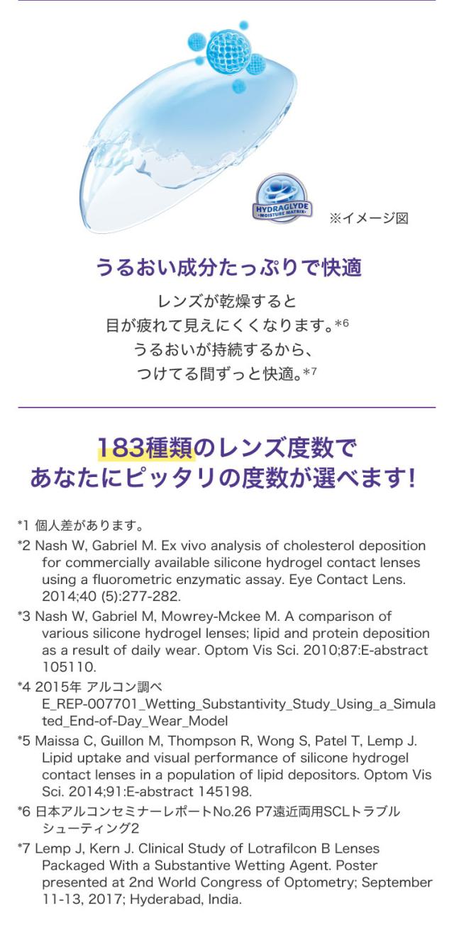 | 注意事項 | ・コンタクトレンズは高度管理医療機器です。必ず眼科医の検査・処方を受けてからお求めください。 ・ご使用前に必ず添付文書(取扱説明書)をよく読み、取扱い方法を守り、正しく使用してください。 あなたの目の健康のために ・装用時間・使用期間を正しくお守りください。(装用時間には個人差があります。眼科医の指示に必ず従ってください。) ・目の定期検査は必ずお受けください。 ・レンズの装用中に少しでも目に異常を感じたら、直ちにレンズをはずして眼科医の検査をお受けください。 ・破損等の不具合のあるレンズは絶対に使用しないでください。 |