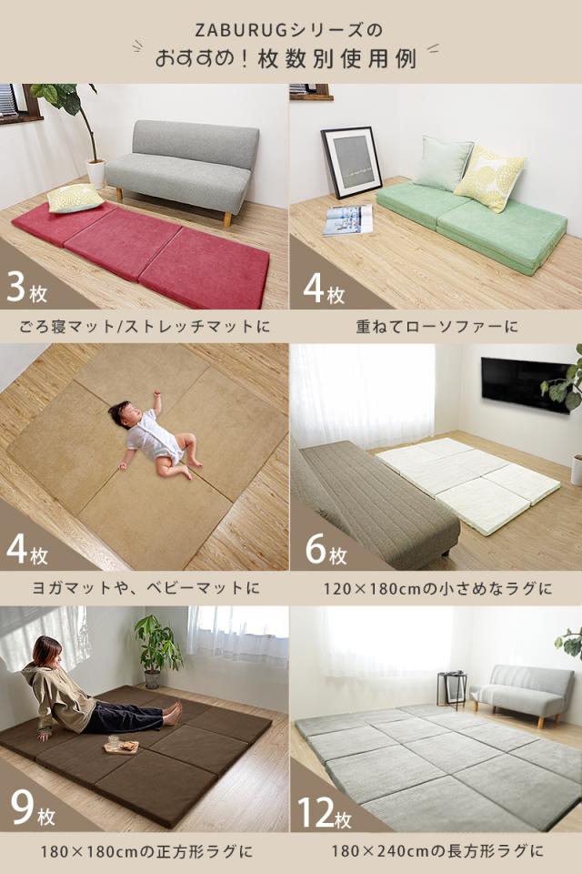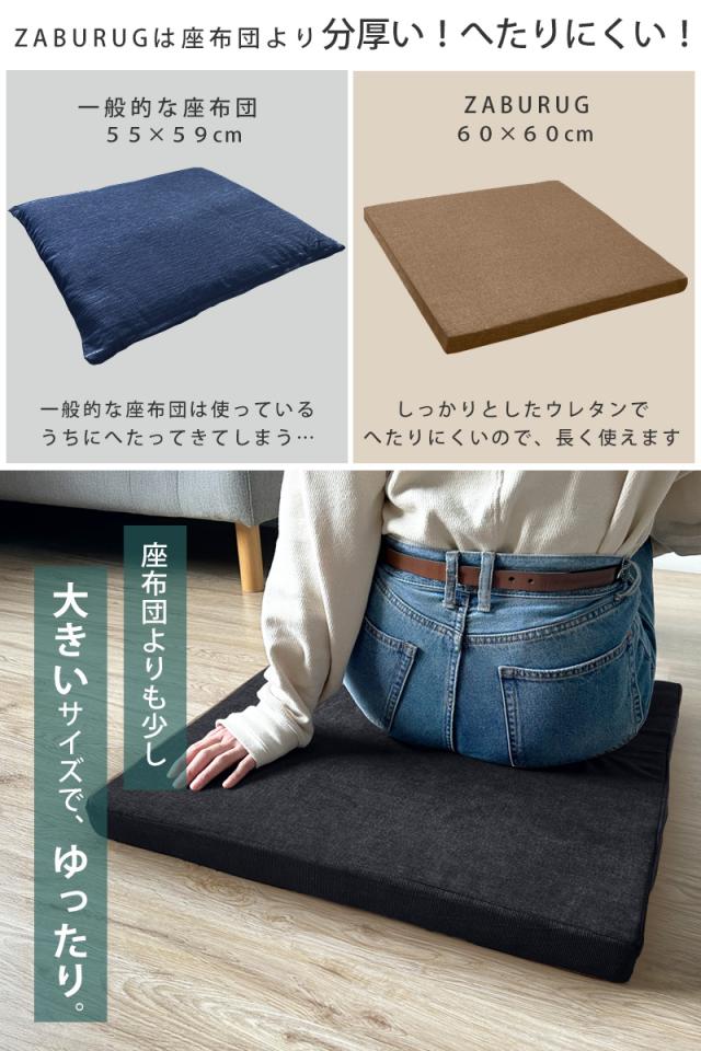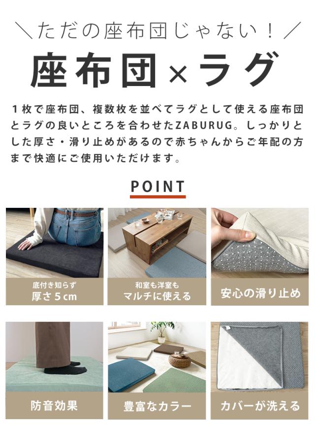 ZABURUG 座布団 高反発 大判 スクエア クッション ドビー織 60×60×5cm 極厚 防音 洗えるカバー まとめ買い ラグ ラグマット おしゃれ 和室 洋室 60×60 フロアマット プレイマット 厚手 子供 マット クッション キッズ ベビー ジョイント 角 アウトドア 冬