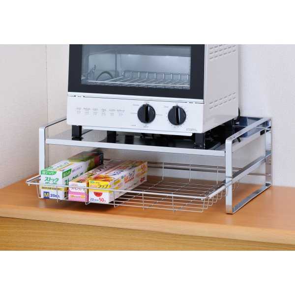 フラットなステンレス製の棚板を使用していますので置きやすく、お掃除も簡単です。