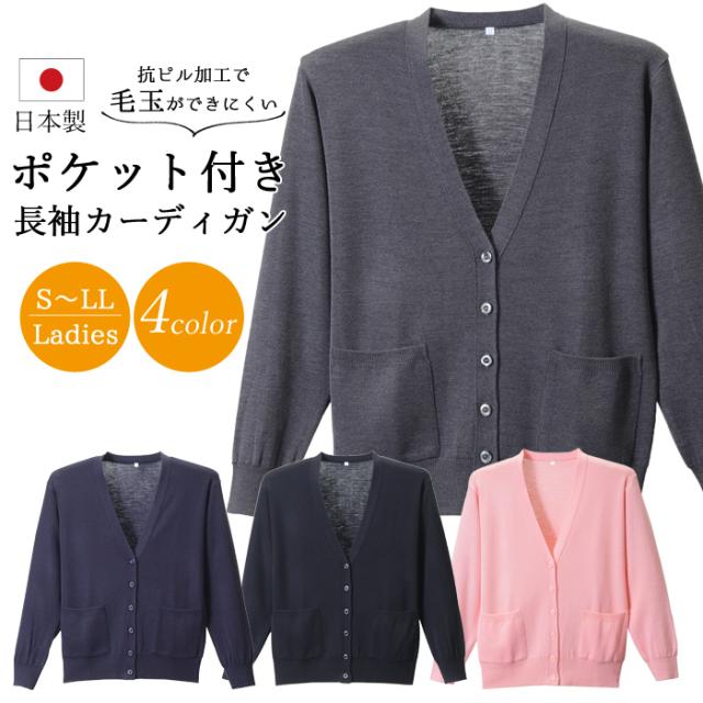日本製 カーディガン ポケット付き レディース 抗ピル 長袖 D-PHASE S/M/L/LL (D-10111_1DS) 【送料無料】オフィス 事務服 ビジネス ナース ユニフォーム 会社 医療 企業 制服 学生 通勤 病院 看護師 介護士 秋冬 春夏 毛玉ができにくく柔らかな肌触り agesugi_sfa