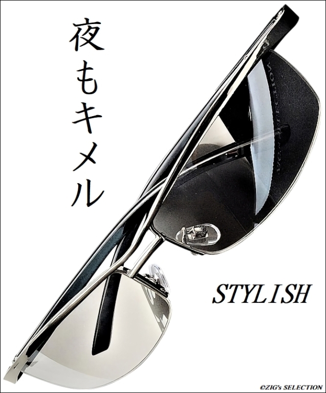 昼夜兼用可/24時間キメル/目を守/春夏秋冬/薄い色/ブラウン/ハーフミラー/UVカット/ハーフリム/シルバー/サングラスケース/メンズ◆gls06