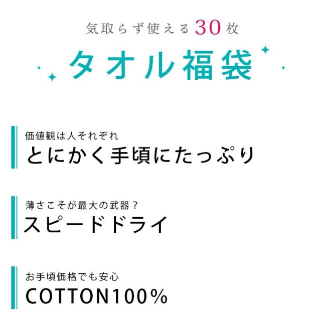 タオル フェイスタオル 34×80cm 30枚セット 色柄おまかせ フェイス 福袋 セット スポーツ 子供 お風呂 アウトドア プール