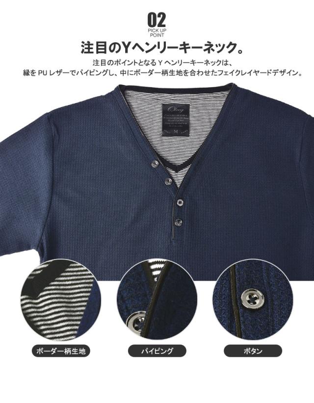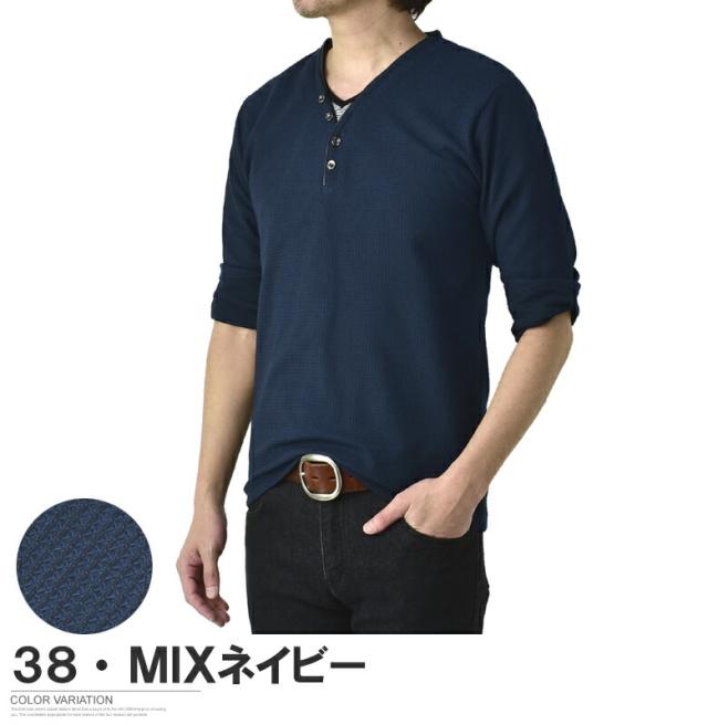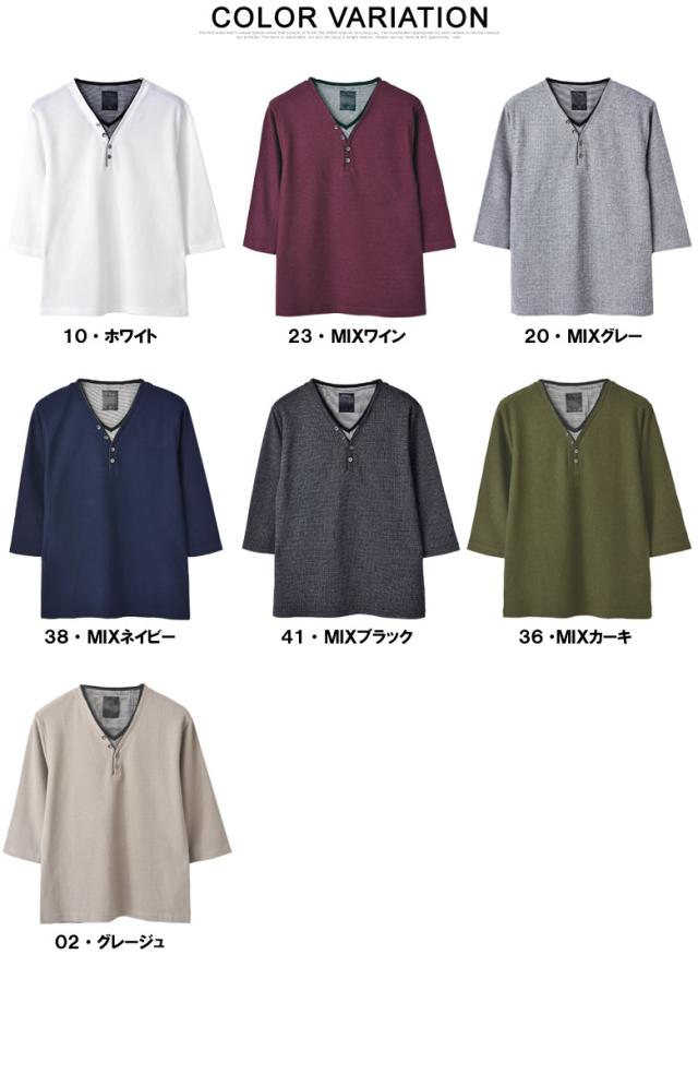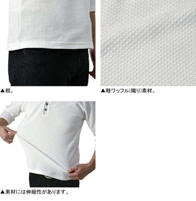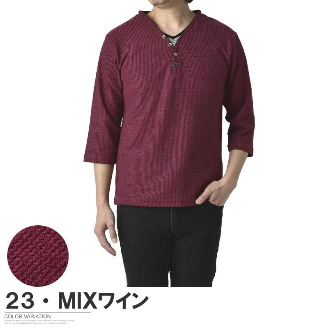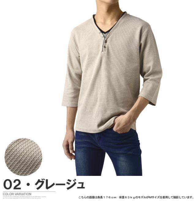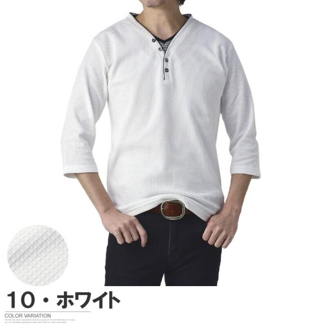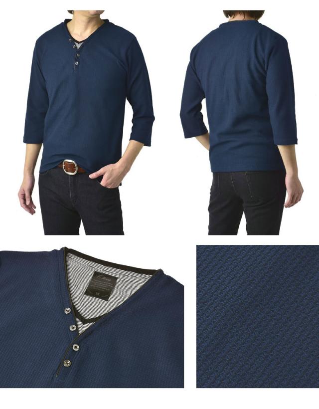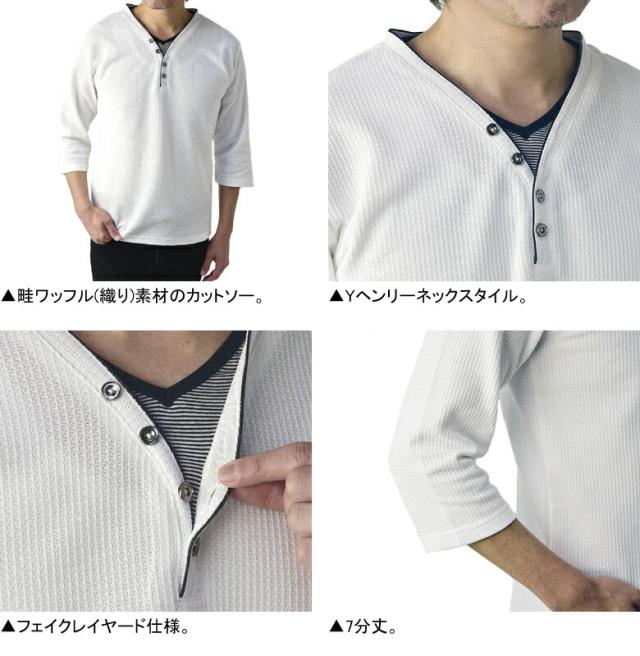 Tシャツ 7分袖 七分袖 畦 ワッフル Y ヘンリー キーネック メンズ カットソー トップス【A6X】【パケ1】