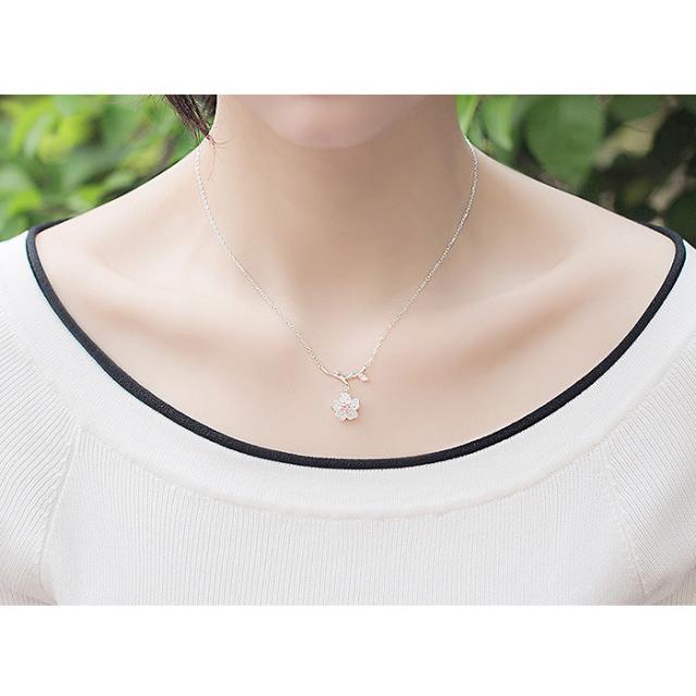 一粒さくらネックレス 桜 ネックレス 女性 クリスマスプレゼント 女性 レディース シルバー925 プラチナ仕上 春 彼女 嫁 妻 娘 ギフトラッピング対応 一粒ジルコニア クリスマス_wp