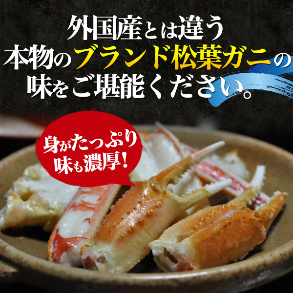 外国産とは違う、ブランド松葉ガニの豊かな味わいをご堪能ください。
