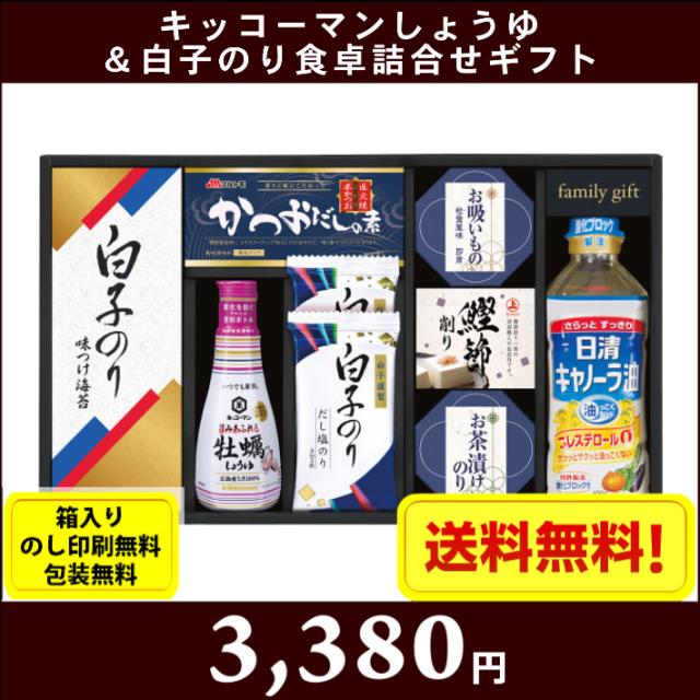 キッコーマン生しょうゆ&白子のり食卓詰合せギフト 7624-045 全国送料無料 箱入り、のし印刷無料、包装無料 お中元 お歳暮