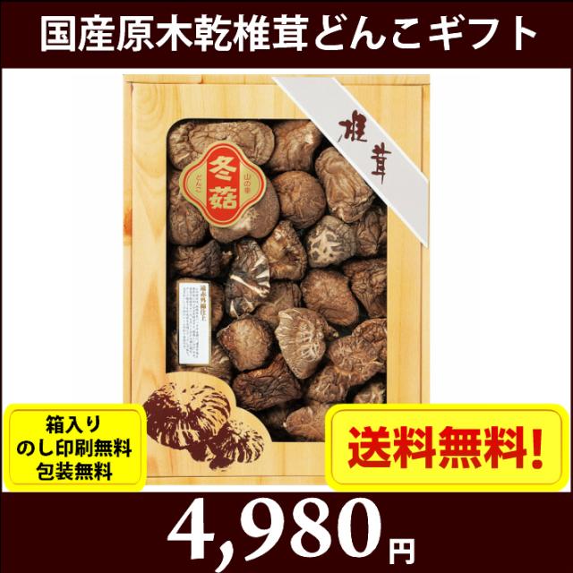 国産原木乾椎茸どんこギフト 7685-089 全国送料無料 箱入り、のし印刷無料、包装無料 お中元 お歳暮