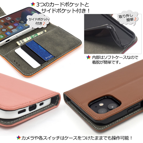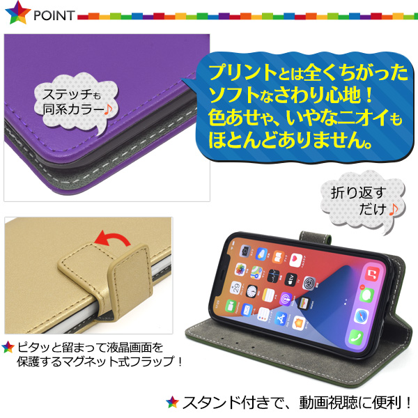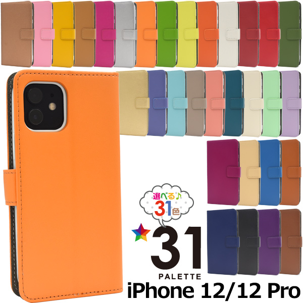 スマートフォンケース iPhone12 iPhone12Pro用 手帳型 カラーレザーケース 31色展開 装着簡単 スマホケース シンプル 可愛い ベーシック 無地 かわいい 携帯ケース スマホカバー 上品 オシャレ おしゃれ お洒落 スマホケース 横開き 手帳系 SoftBank au docomo