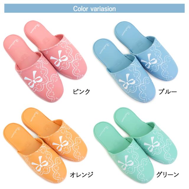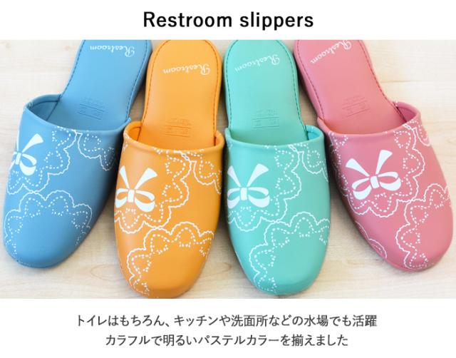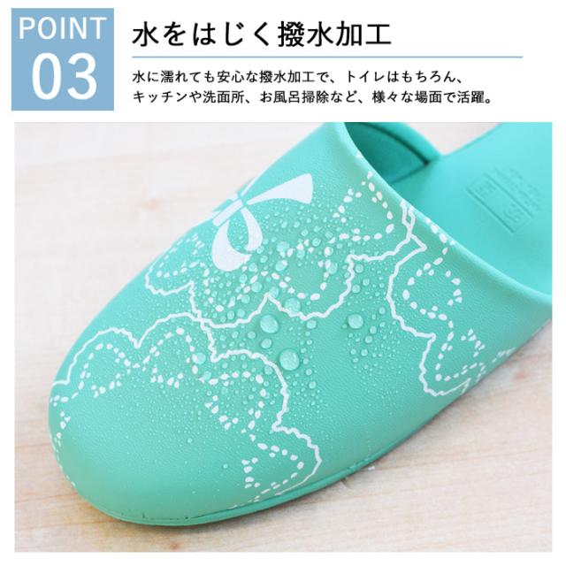 スリッパ トイレ レース リボン柄 フリーサイズ 抗菌 防臭 はっ水 拭ける おしゃれ トイレ用スリッパ ビニール スリッパ (ak-ts207-149) お手洗い 便所 レストルーム キッチン 洗面所 レディース 女性 カカトふっくら履きやすい