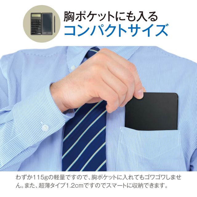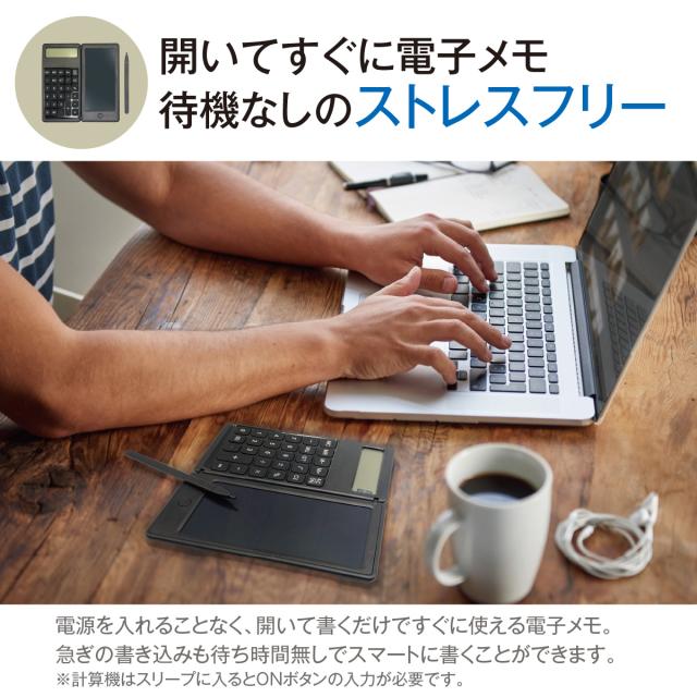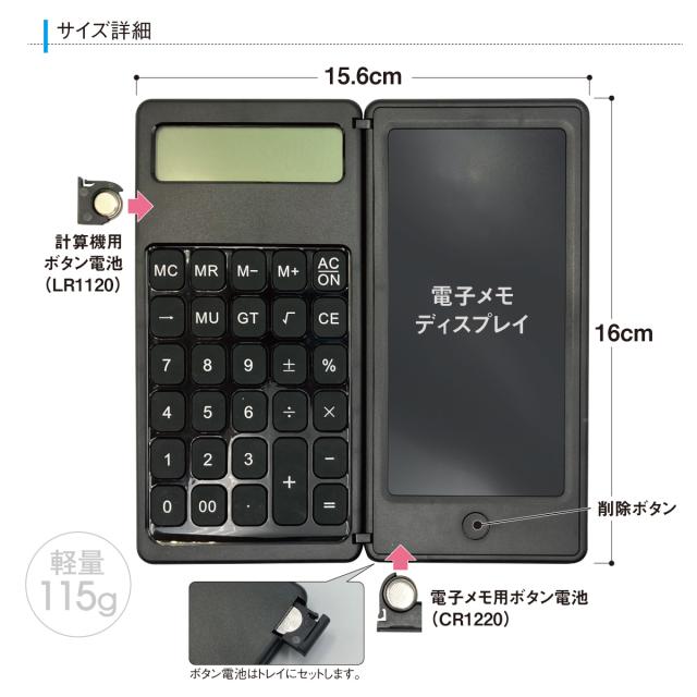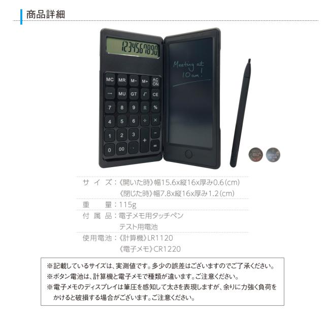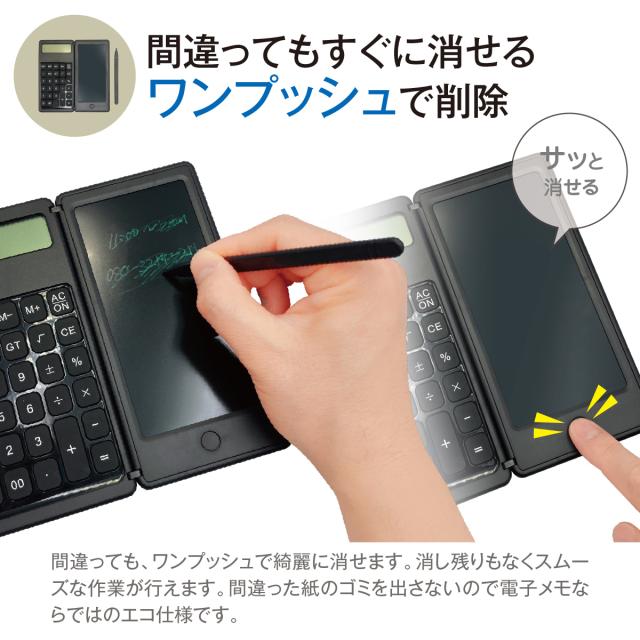 - 電子メモパッドと電卓が一体になったタイプを探していて、購入させて頂きました。 電卓のボタンの反応が今一かと思いましたが、これはこれで慣れると使いやすいです。 電卓とメモほ常に使う為、大変重宝しています...