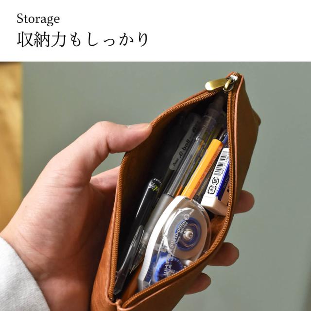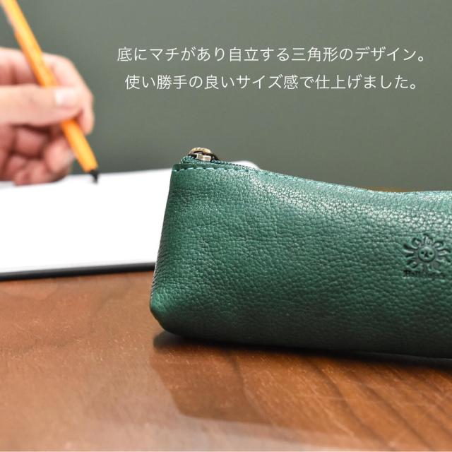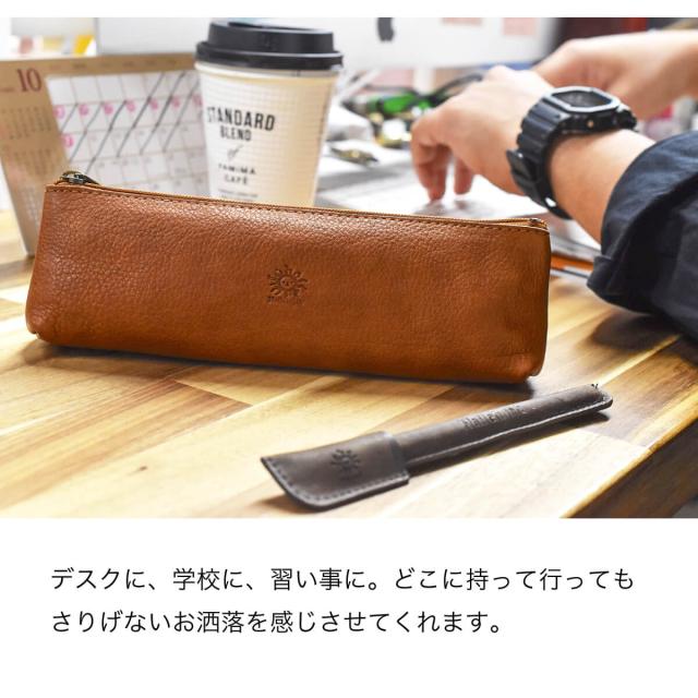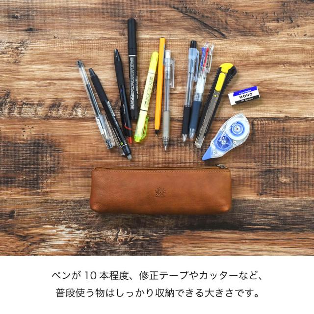 革本来の風合いを感じられる、シンプルなレザーペンケース。底にマチがあり自立するデザイン。使い勝手の良いサイズ感で仕上げました。