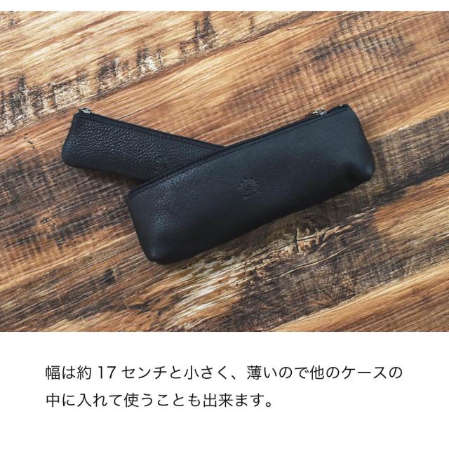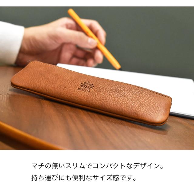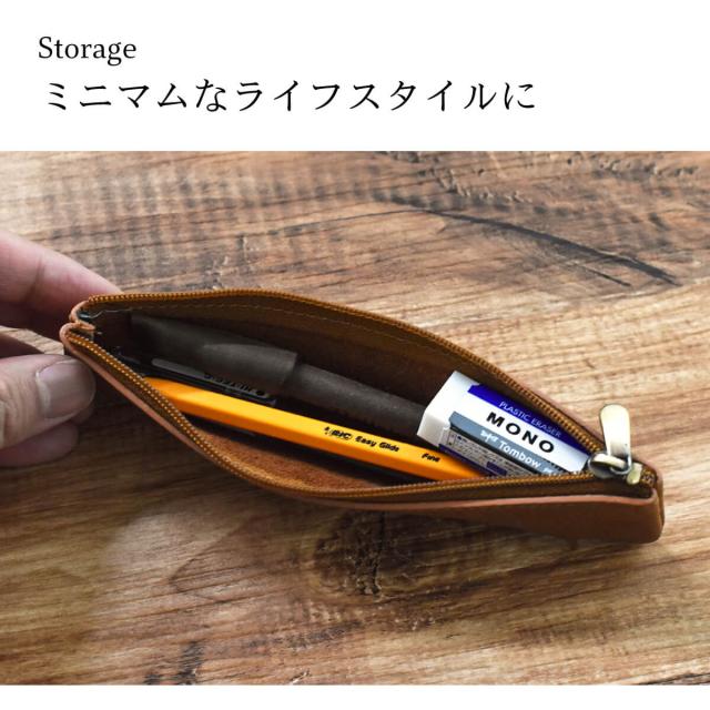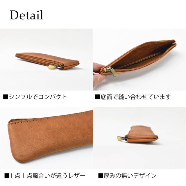 革本来の風合いを感じられる、シンプルなレザーペンケース。マチのないスリムでコンパクトなデザイン。持ち運びにも便利なサイズ感です。