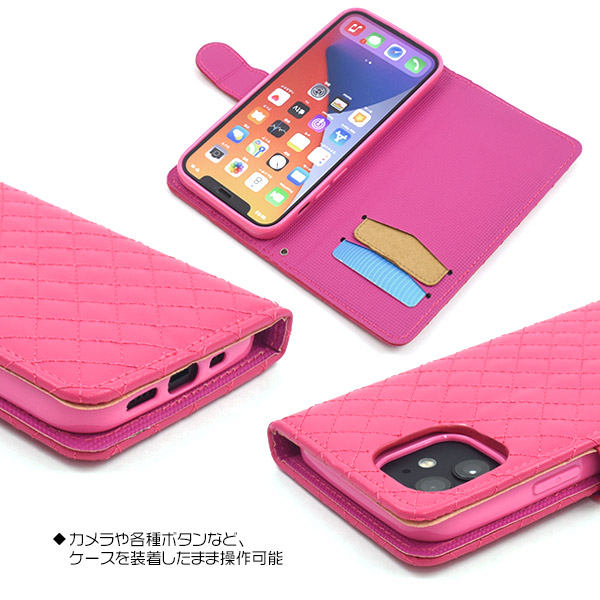スマートフォンケース iPhone12 iPhone12Pro用 手帳型 キルティングレザー スマホケース ベーシック 携帯ケース シンプル かわいい 上品 オシャレ お洒落 エレガント コンサバ おしゃれ スマホカバー フェミニン クラシカル 装着簡単 SoftBank au docomo