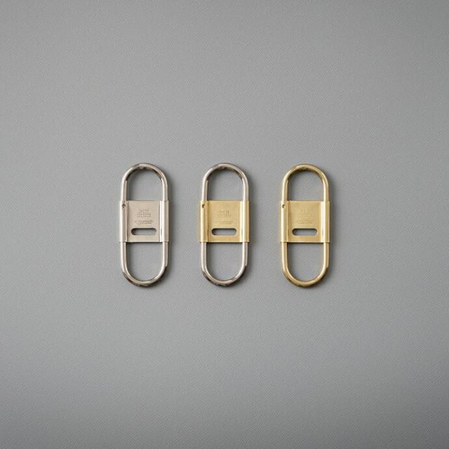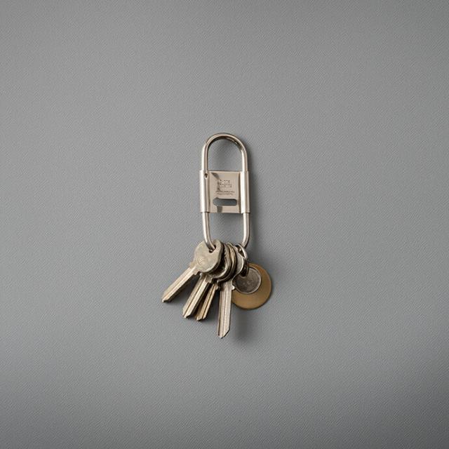 スプリング式で着脱しやすい、カラビナタイプのキーリングをCDW的解釈によりデザイン。