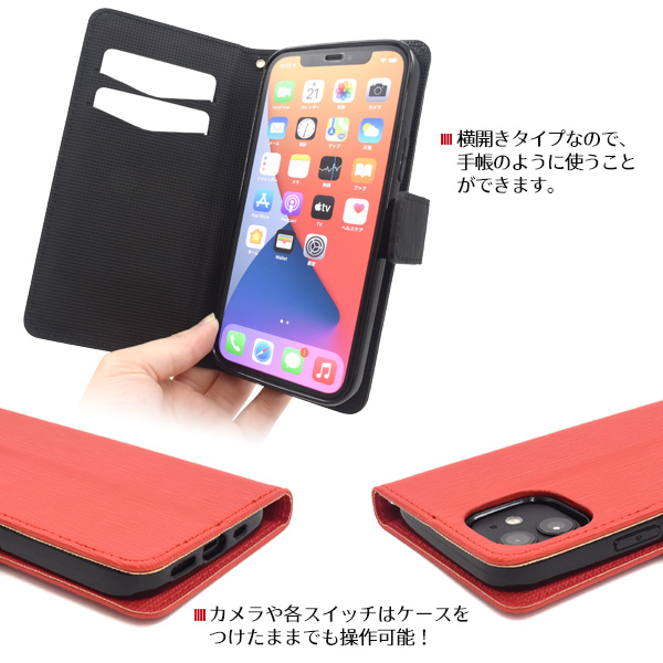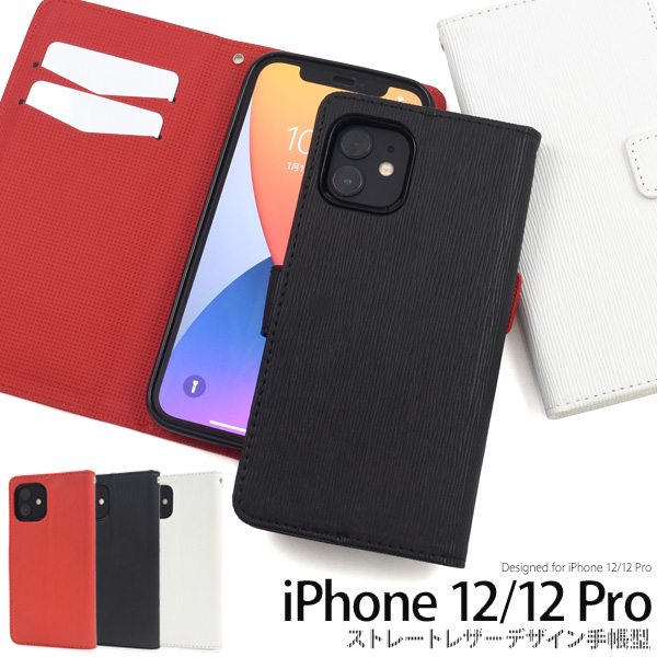 スマートフォンケース iPhone12 iPhone12Pro用 手帳型 ストレートレザーデザイン スマホケース シンプル ストラップホール付き 装着簡単 携帯ケース カジュアル カバー スマホカバー シンプル 白 黒 赤 オトナ女子 保護カバー オシャレ おしゃれ 大人女子 SoftBank au docomo