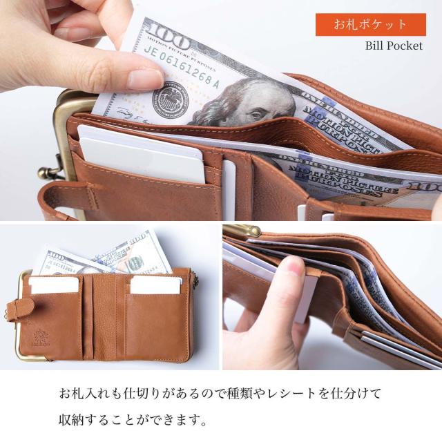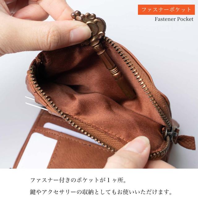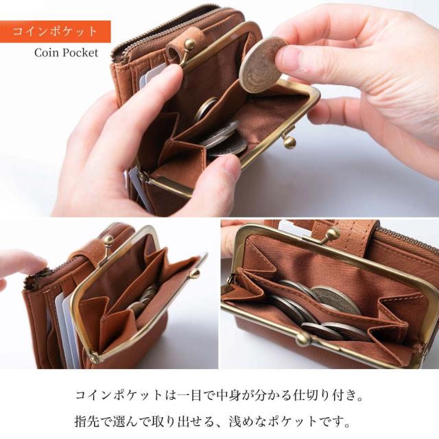浅く作った小銭入れは、ひと目で中身が分かり、手の小さい女性でも取り出しやすい構造になっています。