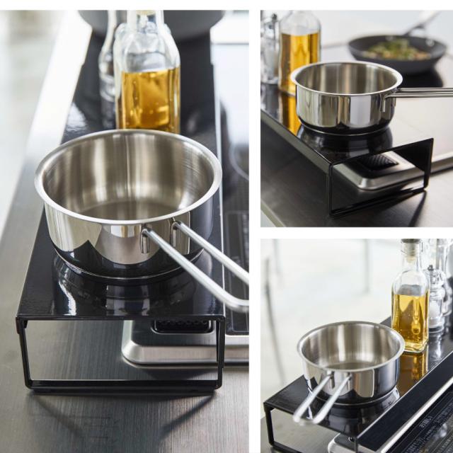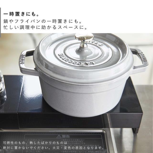 奥行がワイドなので鍋やフライパンの一時置きにも便利。調味料などを置くこともできます。