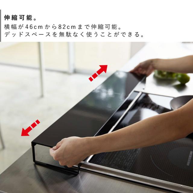 約46cmから82cmまで伸縮するので、コンロサイズに合わせて調節できます。