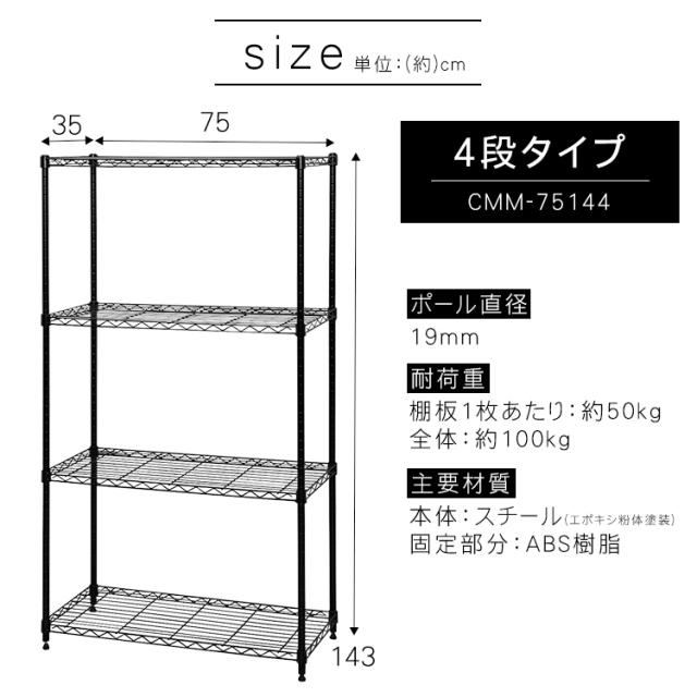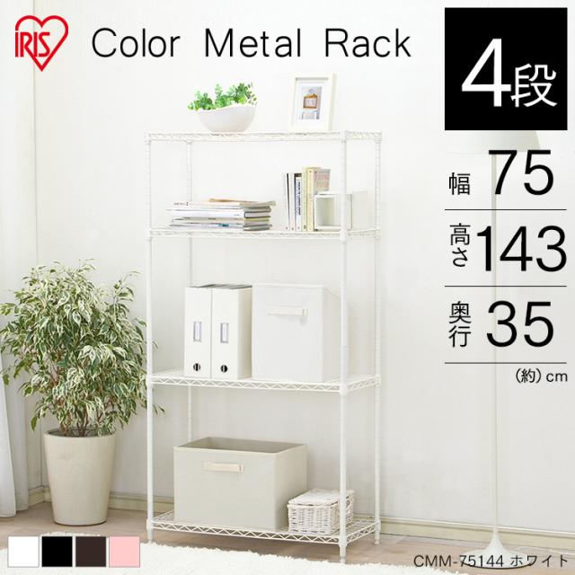 スチールラック メタルラック 4段 CMM-75144 カラーメタルラック ラック シェルフ アイリスオーヤマ ラック 棚 メタルシェルフ 収納 インテリア 収納棚 おしゃれ スチールラック 幅75 キッチンスペース収納