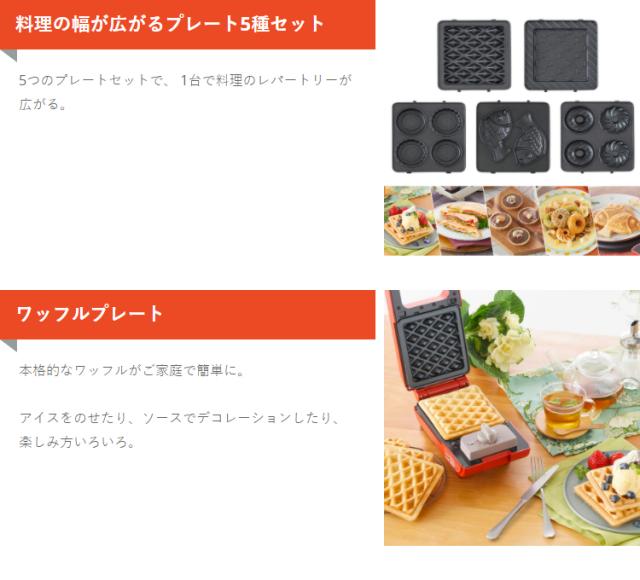 簡単にワッフルやホットサンドが作れるマルチサンドメーカーに別売プレート3種類がついたセットです。