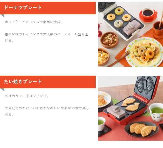さらにドーナツ、ミニタルト、たい焼きプレートで料理のレパートリーが広がります。