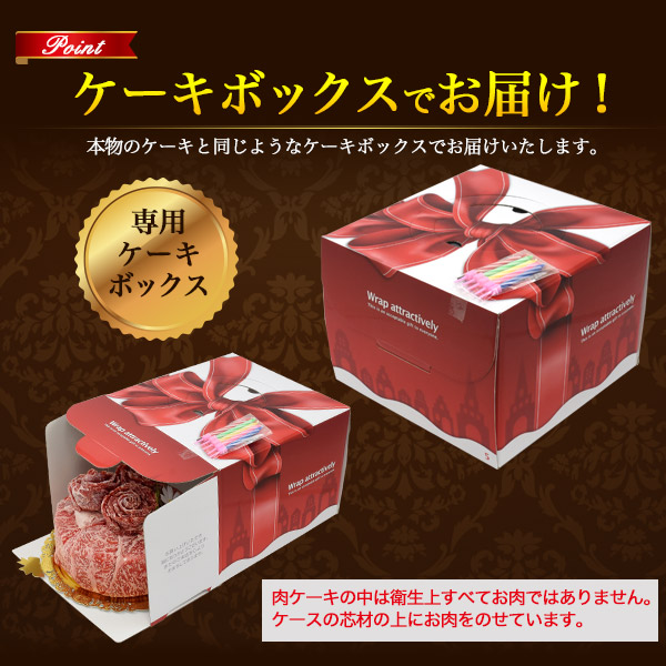 ※肉ケーキの中は衛生上すべてお肉ではありません。ケースの芯材の上にお肉をのせています。