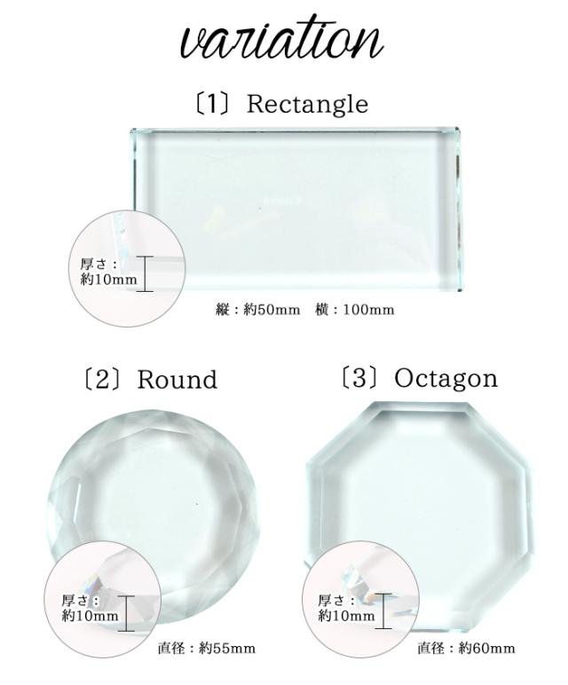 | 種類/サイズ | 【1】レクタングル 縦:約50mm 横:100mm 厚さ:約10mm 【2】ラウンド 直径:約55mm 厚さ:約10mm 【3】オクタゴン 直径:約60mm 厚さ:約10mm |