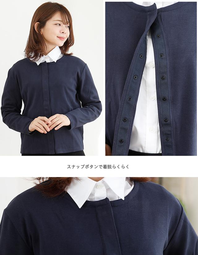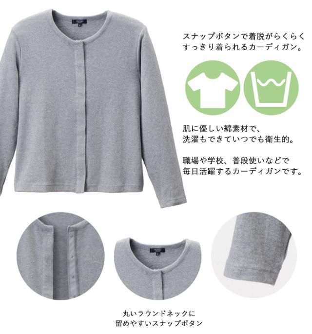 洗える カーディガン 綿98% クルーネック スナップボタン留め レディース 長袖 D-PHASE M/L/LL (D-S-021-DS) オフィス 事務服 ビジネス ナース ユニフォーム 会社 医療 企業 綿混カーディガン 通勤 病院 看護師 介護士 秋冬 春夏 agesugi_sfa