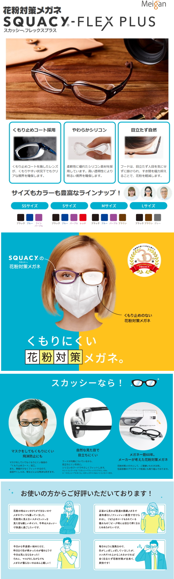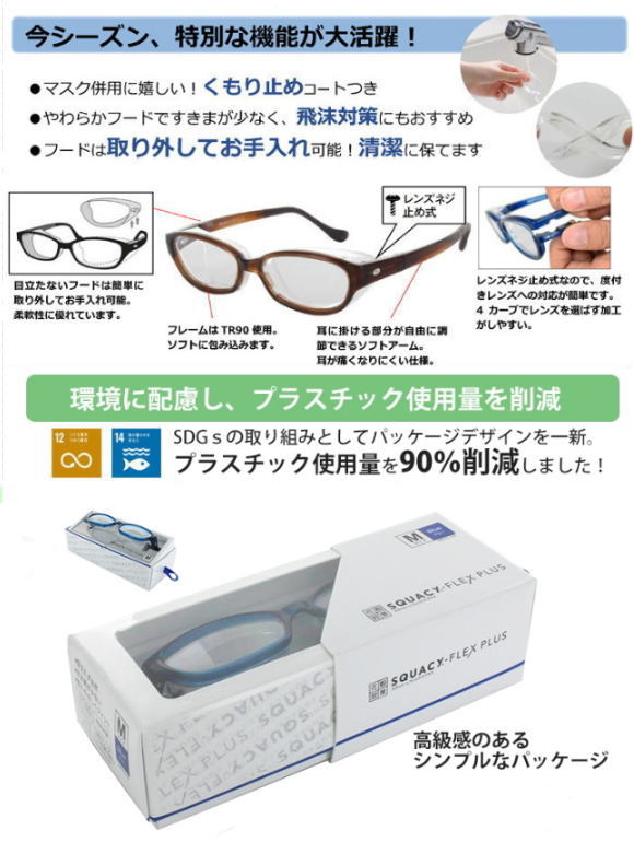 スカッシー フレックスプラス Lサイズ 8838 送料無料 花粉メガネ くもり止め付き 花粉グラス 花粉対策メガネ 飛沫 SQUACY-FLEX PLUS