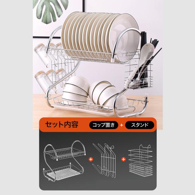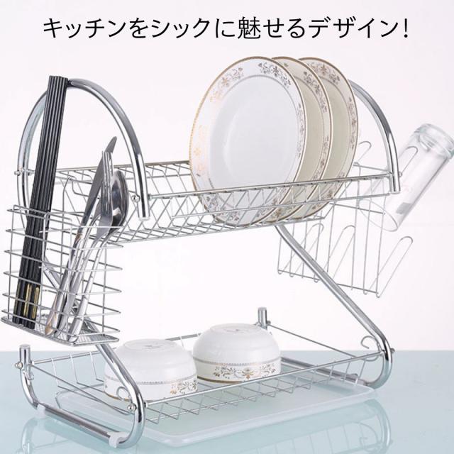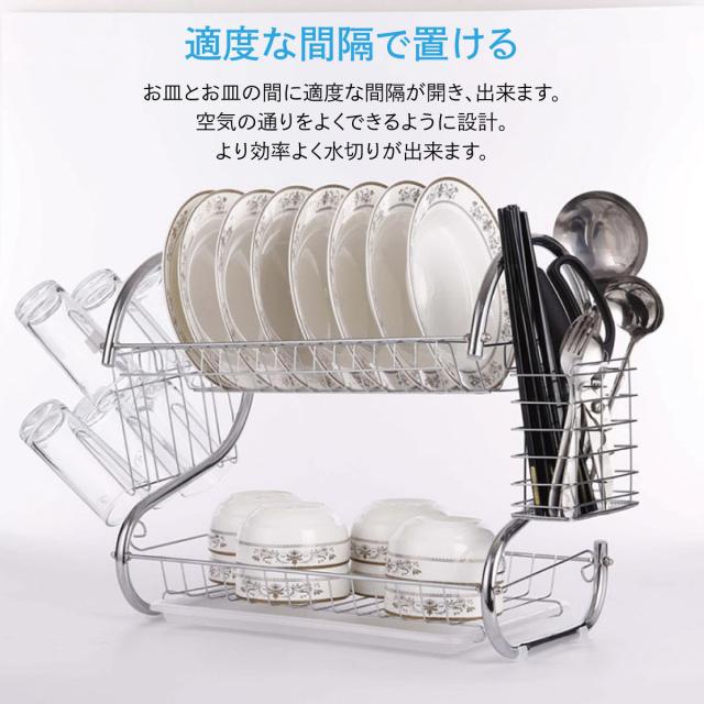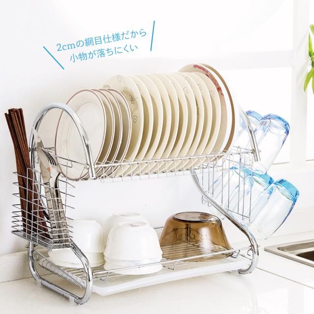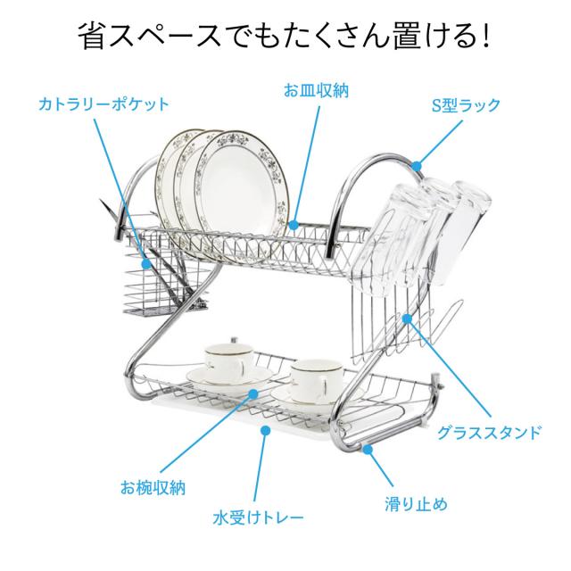 水切りラック 水切りかご 2段 スリム 大容量 S型 キッチン 収納 ステンレス おしゃれ drainer-rack