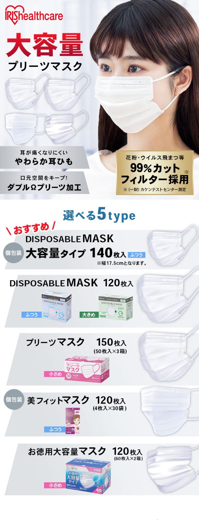 マスク 不織布 アイリスオーヤマ マスク不織布 不織布 大容量 大人用 子供用マスク 使い捨て プリーツマスク ふつうサイズ 小さめサイズ 30P×4箱セット 120P×1箱セット 120枚入 ふつうサイズ プリーツ型 マスク