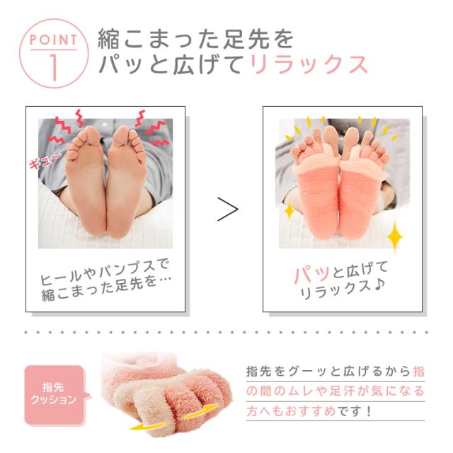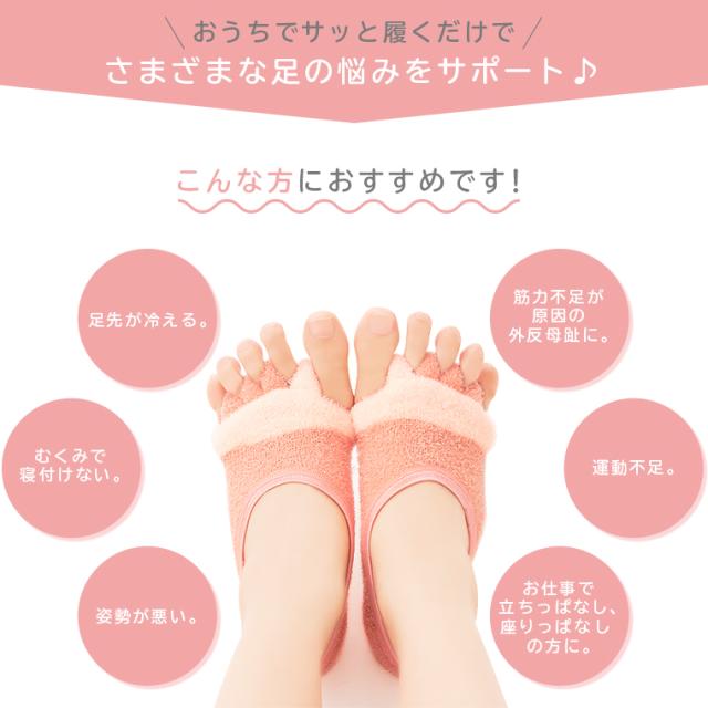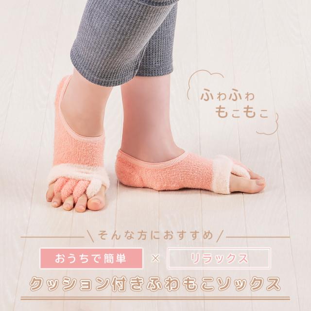 クッション付ソックス 足指ソックス 靴下 ルームソックス むくみ 運動不足 姿勢 フットケア 足汗 ムレ 土踏まず リラックス リフレッシュ 冷え性 かかと保湿 5本指 足指ほぐし 足裏 ふわふわ もこもこ 健康グッズ 室内履き ピンク テレワーク ストレッチ agesugi_sbe