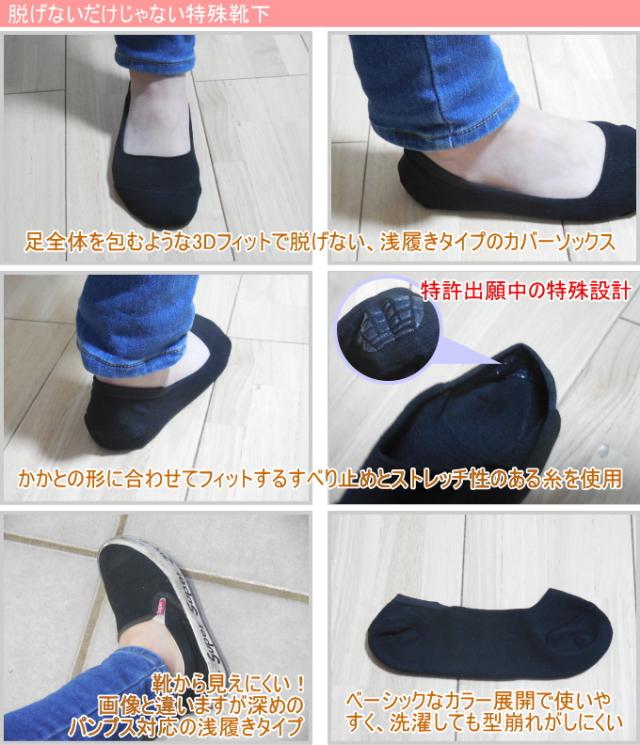 | 下記のような場合脱げることがあります | 足のサイズに合っていない場合。 つま先とかかとを逆にした場合。 すべり止めがかかとからずれている場合。 ストッキングの上から着用した場合 |