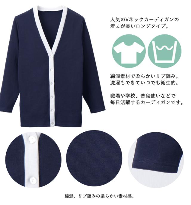 洗える カーディガン Vネック ロングタイプ 6色 レディース 長袖 オフィス D-PHASE S M L LL 3L (D-C-101-DS) 事務服 ビジネス ナース 会社 医療 ユニフォーム 企業 歯科 クリニック 制服 学生 通勤 綿混カーディガン 病院 看護師 介護士 秋冬春夏 agesugi_sfa