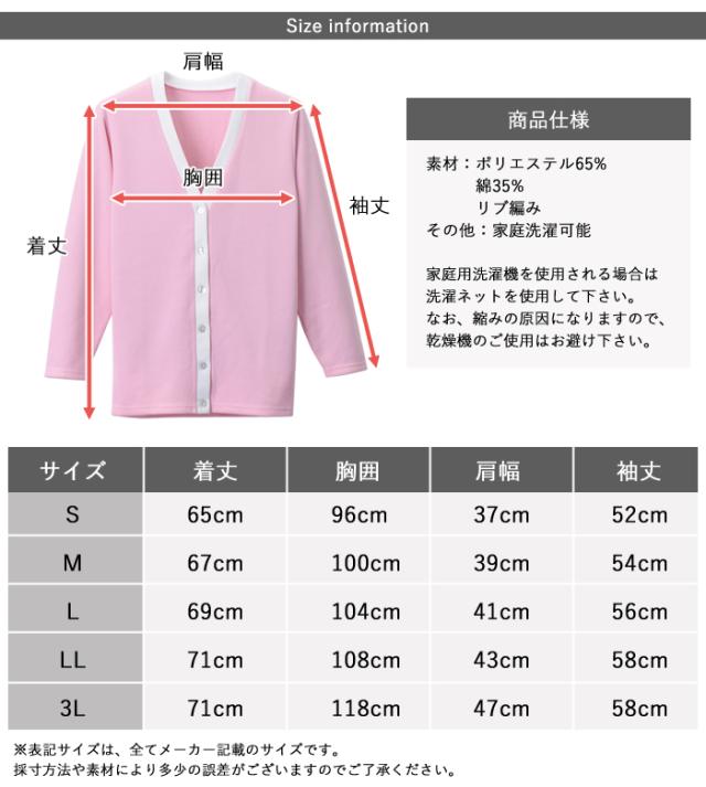 選べる12色のシンプルなVネックカーディガン。 柔らかい綿混素材を使用し、中肉のリブ編みにしています。 家庭での洗濯も可能でいつでも衛生的。 職場や学校、普段使いなど毎日活躍するカーディガンです。 ■サイズ:S〜3L ※サイズにつきましてはメーカー表記サイズとなります。 詳細は商品画像をご確認下さい。 ■素材:ポリエステル65% 綿35% リブ編み ■その他:洗濯可能 <注意事項> ※家庭用洗濯機を使用される場合は洗濯ネットを使用して下さい。 なお、縮みの原因になりますので、乾燥機のご使用はお避け下さい。 ※お客様のご覧になられますパソコン機器及びモニタなどの違いにより、実際の商品素材の色と相違する場合もありますのでご了承下さい。【2102】 |