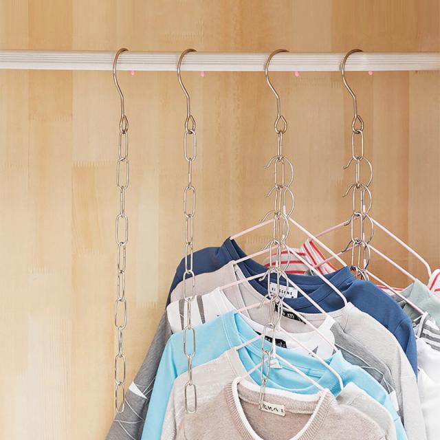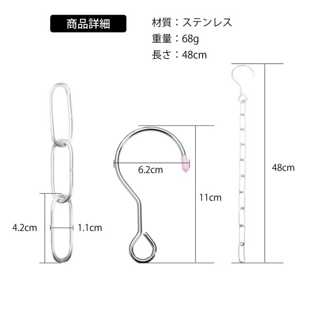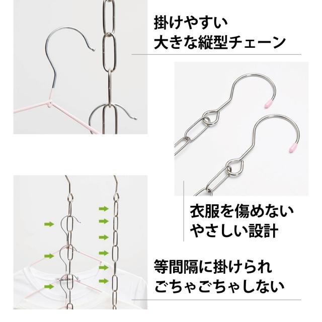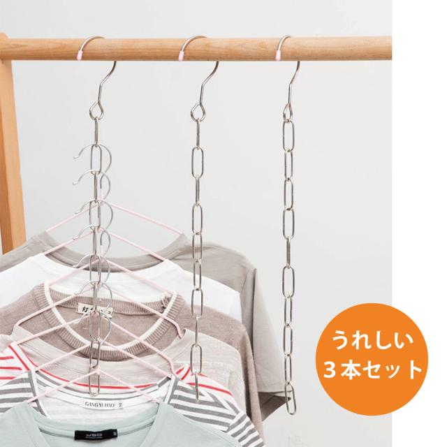 ハンガーフック チェーン 3本セット クローゼット収納 壁掛け 吊り下げ収納 ハンガー掛け ステンレス 便利グッズ chain-hook