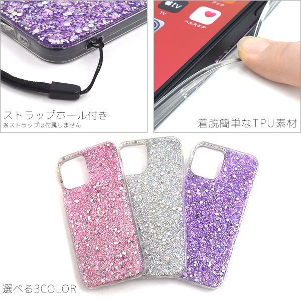 スマートフォンケース iPhone12 iPhone12Pro用 グリッター ラメケース 装着簡単 キラキラ オシャレ ストラップホール付き スマホカバー 背面保護 携帯ケース バックカバー スマホケース シンプル きらきら フェミニン 可愛い かわいい 華やか SoftBank au docomo