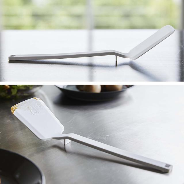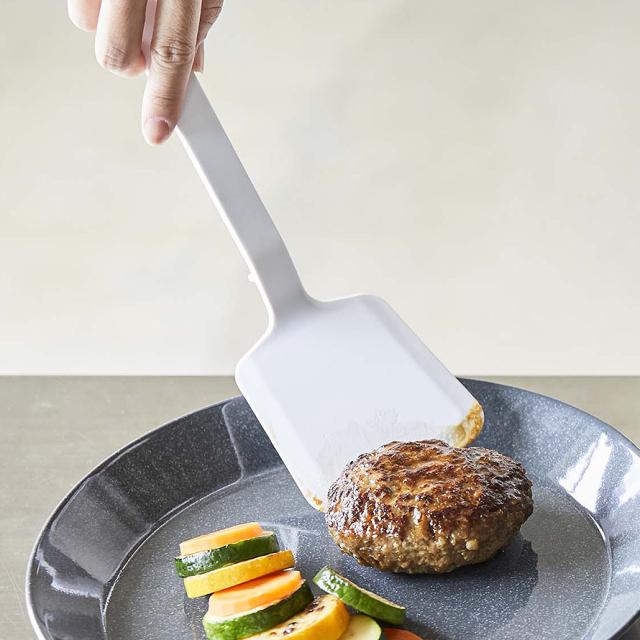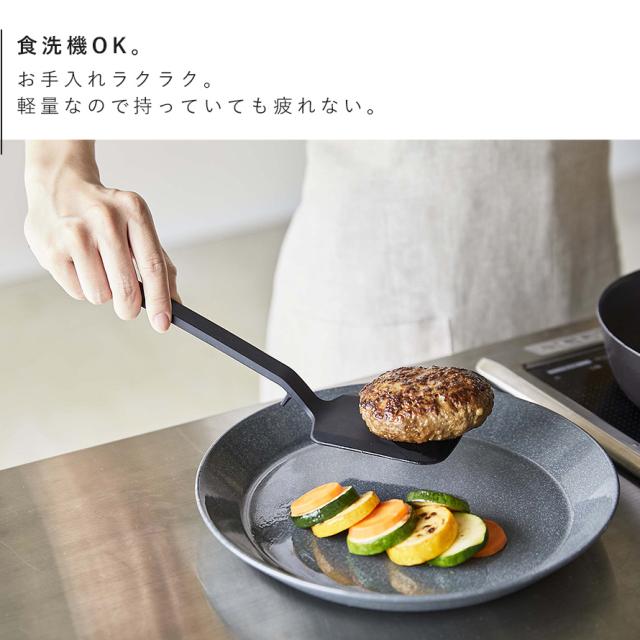 シリコーン製なので軽量。ステンレス製のようにフライパンを傷つける心配がなく、プラスチック製のように熱に弱く溶けてしまうというデメリットがありません。食洗機にも使えます。