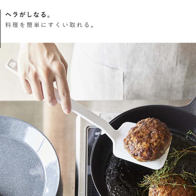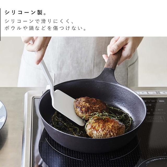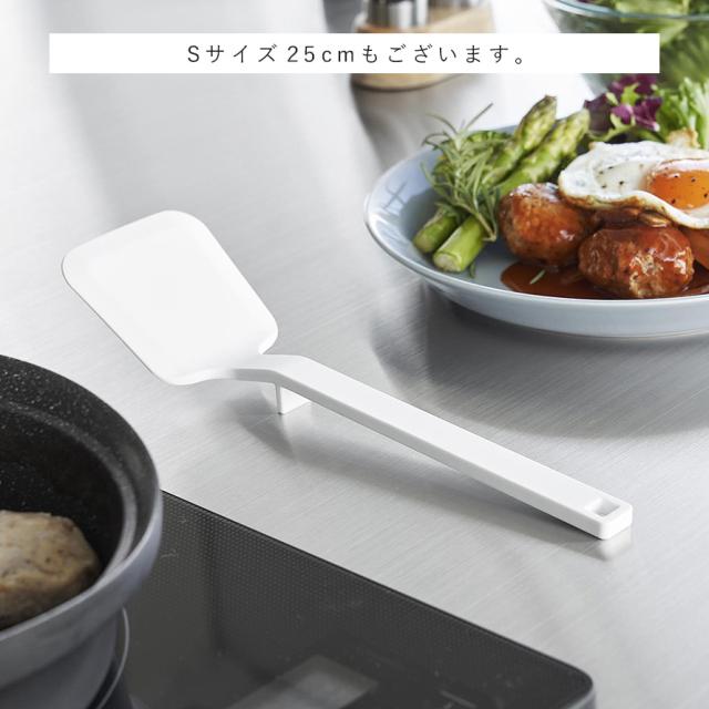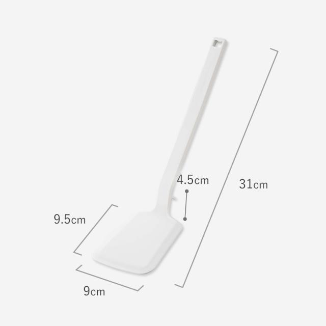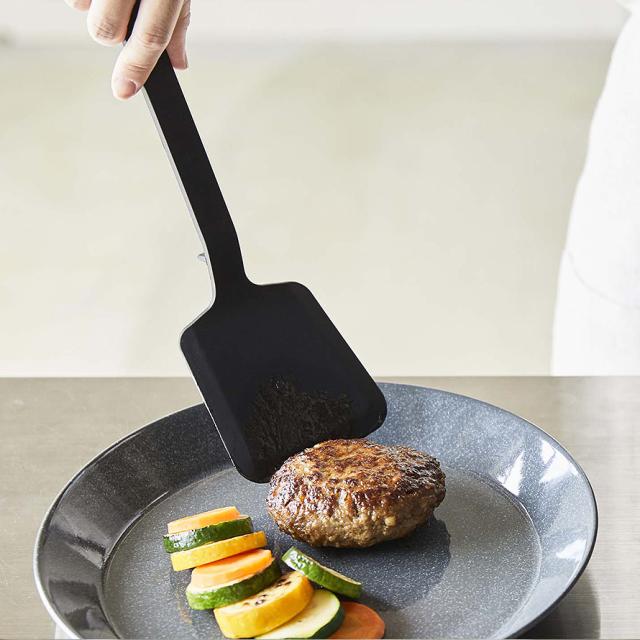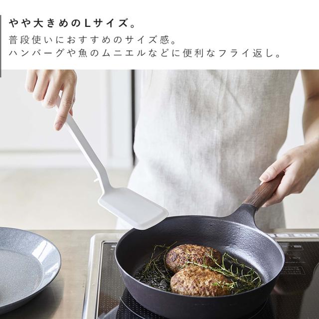 シリコーン製で滑りにくく、熱に強く、弾力性に優れ、ボウルやナベ、フライパンなどを傷つけないフライ返し。普段使いにちょうどいい、やや大きめ31cmのLサイズ。