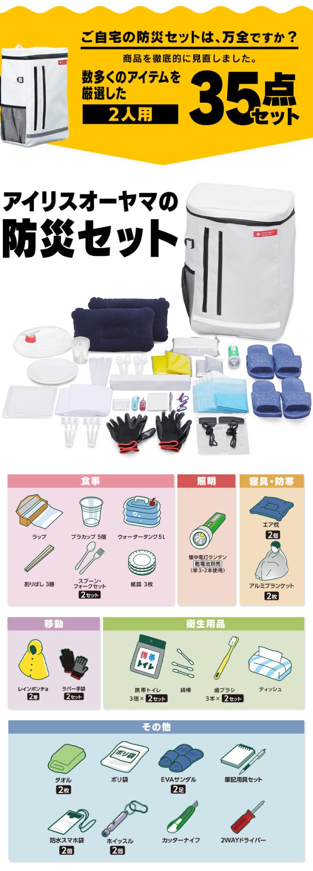 【防災士監修】 防災グッズ 35点 セット 防災セット 2人用 食品なし アイリスオーヤマ 防災リュック 防災 災害グッズ ライト 携帯トイレ 給水タンク ウォータータンク 非常用持ち出し袋 避難グッズ 防災リュックセット 防災用品 BS2-35 *