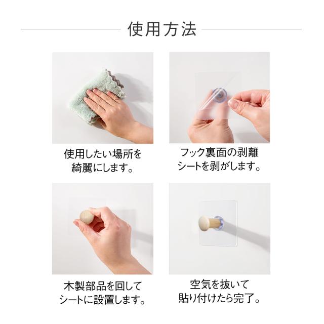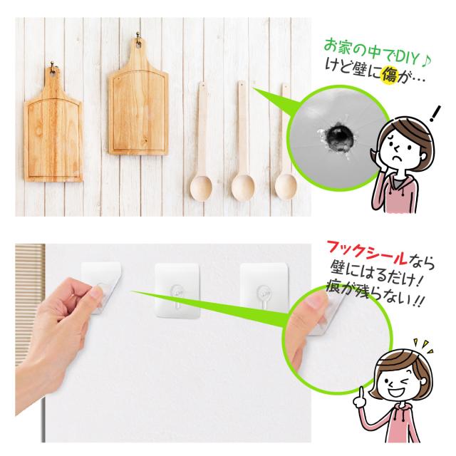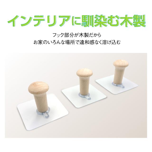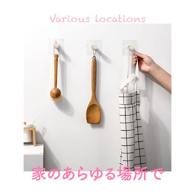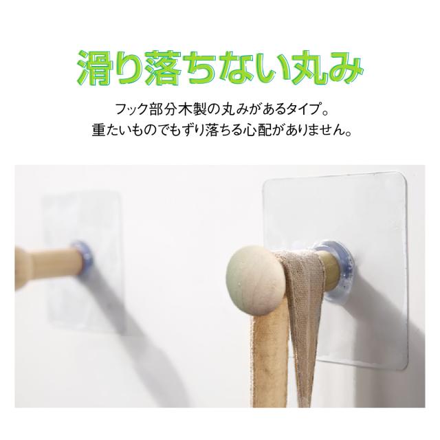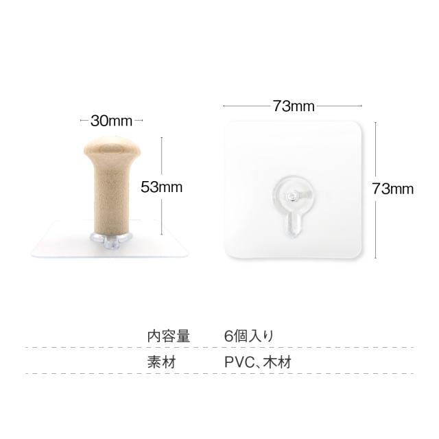 超強力 木製 フック シール 6個入り 壁 透明タイプ 耐荷重5kg はがせる 穴開けない 賃貸 繰り返し使える キッチン バスルーム 粘着 引っ掛け 壁掛け sl-hook02