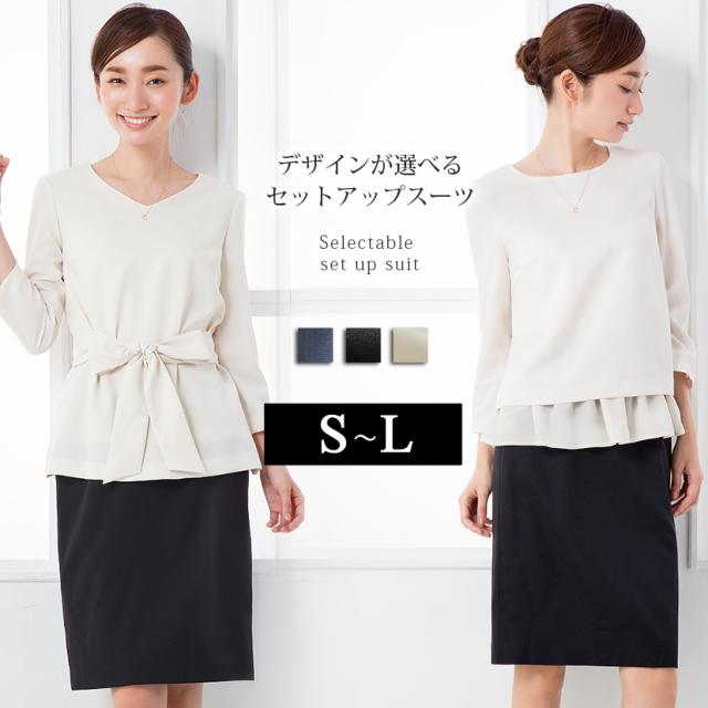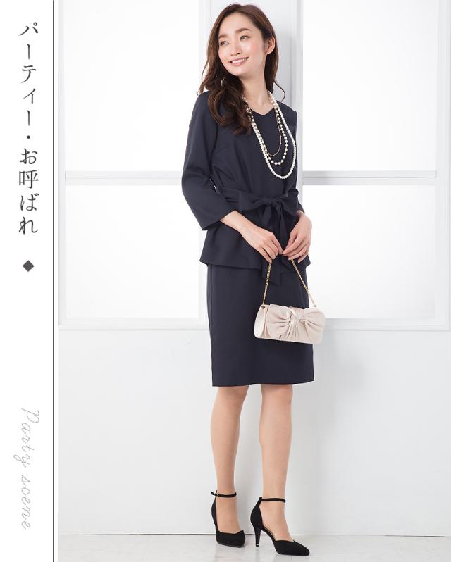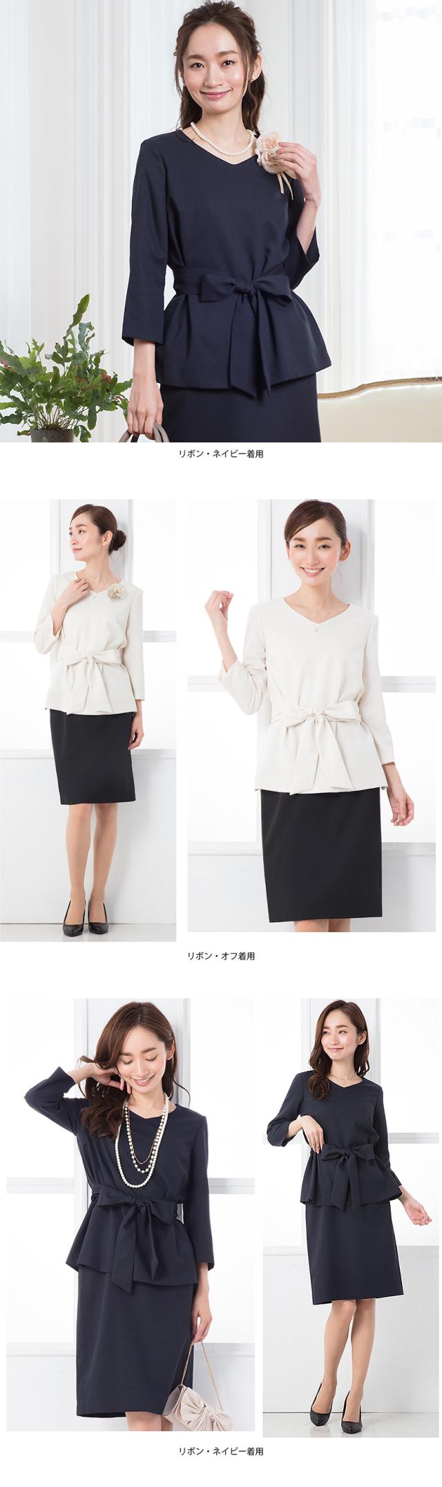 | セットアップ ペプラム ウエストリボン タイトスカート ラウンドネック 洗える ウォッシャブル | |