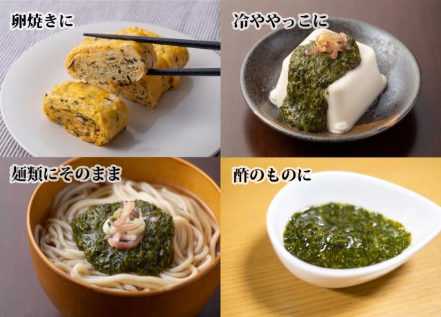 三陸の海で粘りの強い時期の新鮮なあかもく(ぎばさ)を採草、その後ボイルし食べやすいように裁断しました。素材を生かすため、無添加・無着色で仕上げています。粘り良し、鮮度吉のあかもくを是非ご賞味ください。