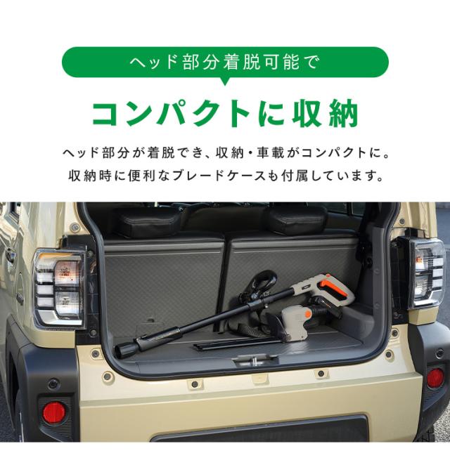 ヘッド部分は着脱可能・ブレードケースも付属しているため、コンパクトに収納・車載ができます。